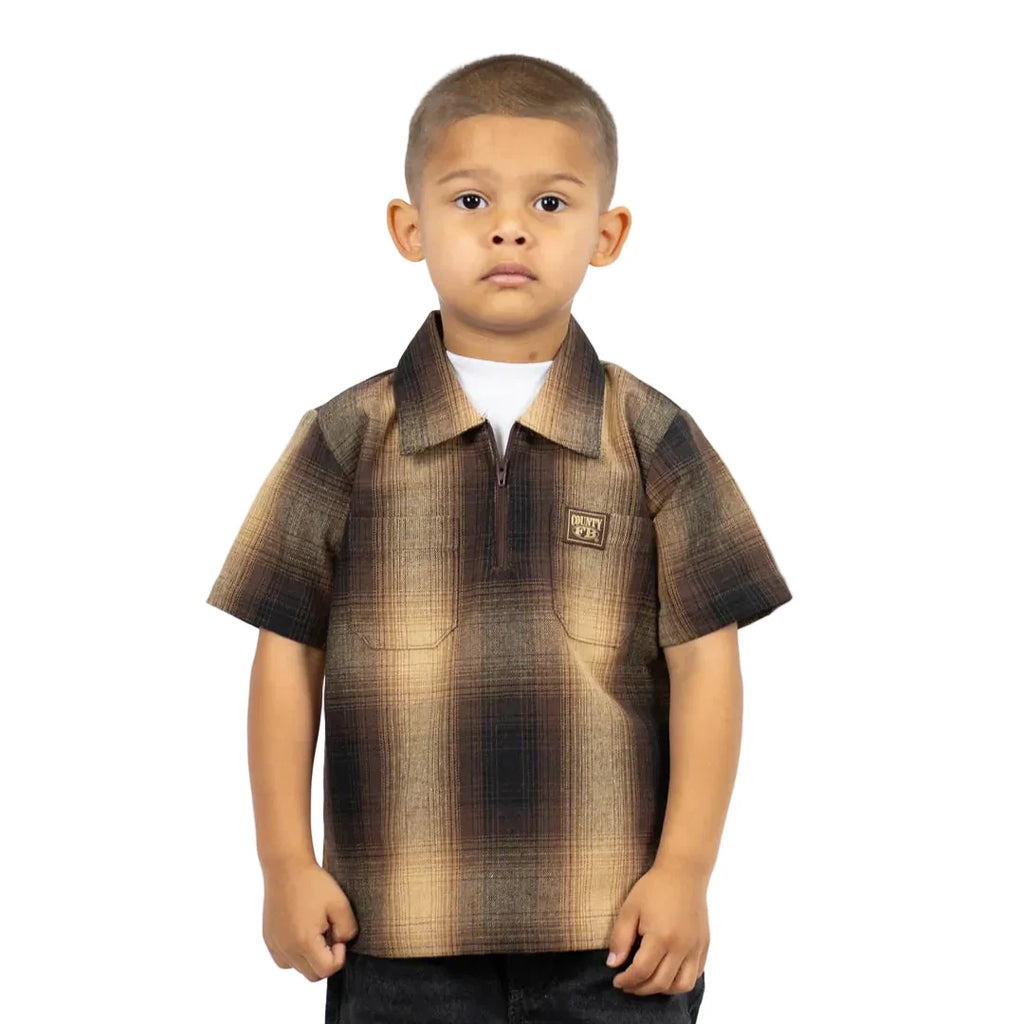 FB COUNTY KID’S SHORT SLEEVE CHECKER ZIP SHIRT BLACK