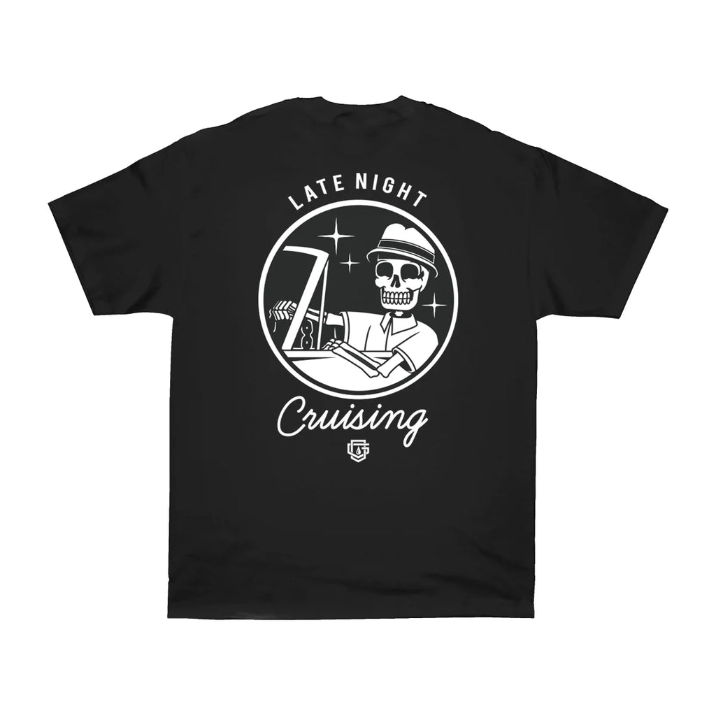 Experience the essence of late-night cruising with the OG Family, LATE NIGHT, in black. Crafted for streetwear enthusiasts, this tee combines sleek black fabric with a design that captures urban nightlife vibes. Perfect for those who value style and comfort during evening adventures, it offers a versatile look that pairs effortlessly with your favorite streetwear pieces. Elevate your wardrobe with this expert blend of casual cool and city-inspired attitude.