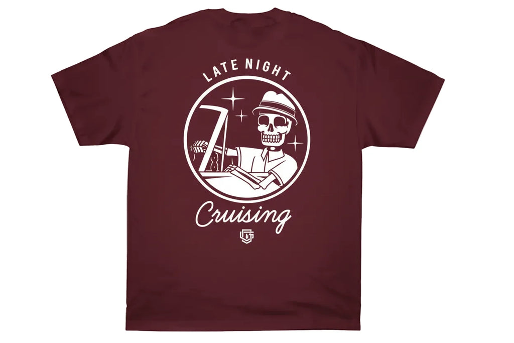 Experience the essence of late-night cruising with the OG Family, LATE NIGHT, in burgundy. Crafted for streetwear enthusiasts, this tee combines sleek black fabric with a design that captures urban nightlife vibes. Perfect for those who value style and comfort during evening adventures, it offers a versatile look that pairs effortlessly with your favorite streetwear pieces. Elevate your wardrobe with this expert blend of casual cool and city-inspired attitude.
