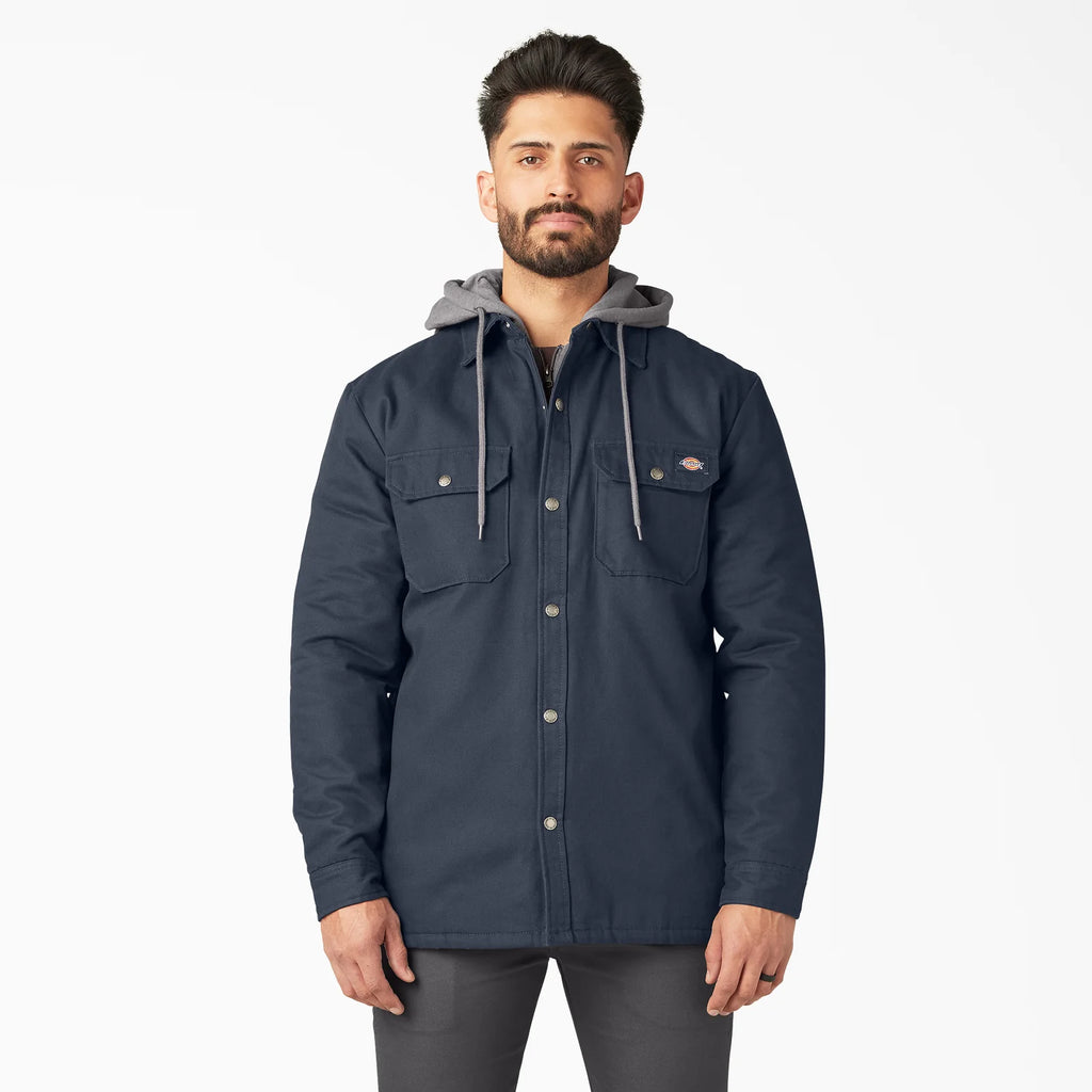 DICKIES WATER REPELLENT DUCK HOODED SHIRT JACKET - DARK NAVY